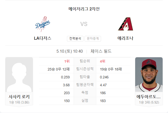5월 10일 MLB 메이저리그 볼티모어 오리올스 VS LA 에인절스 타카짱의 경기 예측 분석 (0) | 2025.05.10 |