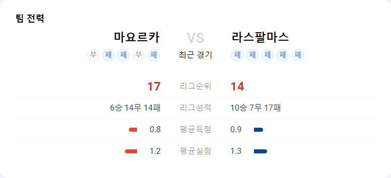 라스팔마스는 연속된 패배를 기록 중이며, 특히 공격에서 박스 안으로의 침투가 부족한 모습을 보이고 있습니다. 다만, 공을 오래 소유하며 상대에게 기회를 주지 않는 경향이 있어 마요르카와의 경기에서도 점유율에서는 우위를 보일 수 있을 것으로 예상됩니다.