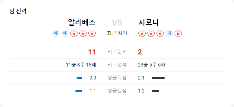 또한, 알라베스와의 역대 전적에서도 두 골 차 이상의 승리가 드문 만큼, 이번 경기도 쉽지 않을 것으로 예상됩니다.