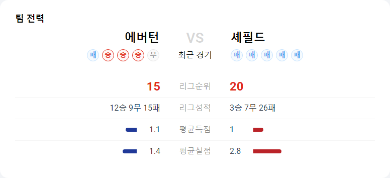 에버튼은 홈에서 강한 모습을 보이고 있으며, 특히 세트피스에서의 전술 다양성이 두드러진다. 비록 오픈플레이에서의 성능은 다소 부족하지만, 압박 강도가 높고 셰필드의 약한 세트피스 대응을 활용할 수 있는 점에서 유리할 것으로 보인다. 주요 결장자로는 미콜렌코가 있으며, 이는 팀 전력에 다소 영향을 줄 수 있다.
