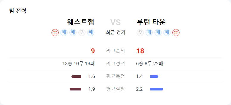 하지만 웨스트햄의 홈 이점과 루턴의 부상자 문제를 고려했을 때, 웨스트햄이 근소한 우위를 점할 가능성이 높습니다.