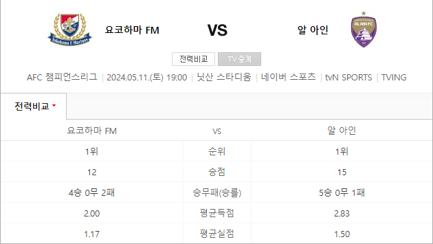 요코하마 마리노스의 초반 공격력과 알아인의 전술적 유연성이 이번 경기의 주요 포인트가 될 것입니다. 요코하마는 다쿠미의 결장으로 수비에 취약점을 드러낼 수 있으며, 알아인은 이를 역습으로 이용할 수 있을 것입니다.