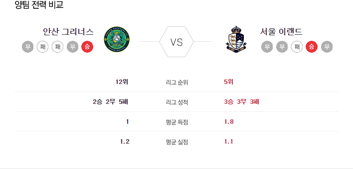 5월 11일 K리그2 안산 VS 서울 이랜드 타카짱의 경기 예측 분석