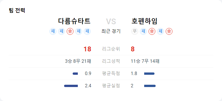 다름슈타트와 호펜하임의 매치업은 두 팀 모두 공격적인 전술을 선호하는 만큼 고득점 경기가 예상됩니다. 다름슈타트는 수비에서 취약점을 드러내고 있으며, 호펜하임도 비슷한 문제를 가지고 있습니다. 이러한 상황에서는 양 팀 모두 득점 기회를 많이 창출할 것으로 보이며, 경기는 역동적인 공방전으로 흘러갈 가능성이 높습니다.