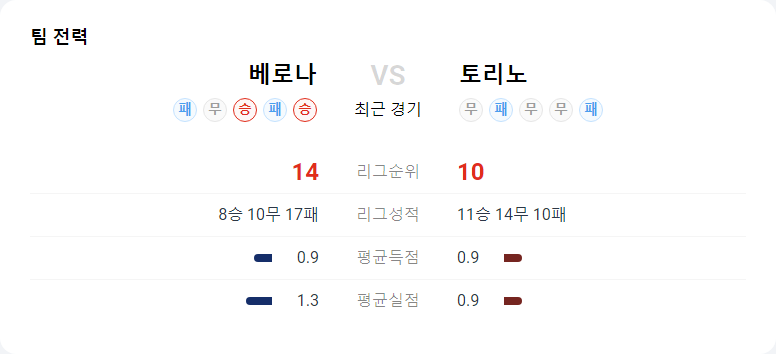 두 팀 모두 공격에서 일관성을 보여주지 못하고 있으며, 중요한 선수들의 결장이 두 팀에게 큰 영향을 미칠 것으로 보입니다. 베로나와 토리노 모두 상대적으로 수비적인 접근과 실리적인 경기 운영을 선호할 가능성이 높아, 낮은 득점이 예상되는 경기가 될 수 있습니다. 결국 어느 팀이 상대방의 수비를 뚫고 기회를 만들어내느냐가 승부의 관건이 될 것입니다.