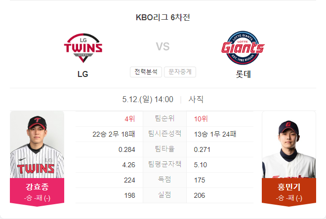 | 5월 12일 KBO 프로야구 KT 위즈 VS 두산 베어스 타카짱의 경기 예측 분석 (0) | 2024.05.12 |