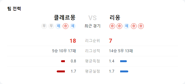 리옹은 리그 7위를 기록하며 비교적 안정적인 모습을 보이고 있습니다. 이 팀은 최근 경기에서 공격적인 전략을 선보이며 좋은 결과를 얻고 있습니다. 리옹의 공격력은 클레르몽과 같이 수비적인 팀을 상대로 유효할 수 있으며, 이번 경기에서도 화력을 앞세워 승점을 노릴 것입니다. 결장자가 없는 상황은 리옹에게 더욱 유리하게 작용할 수 있습니다.