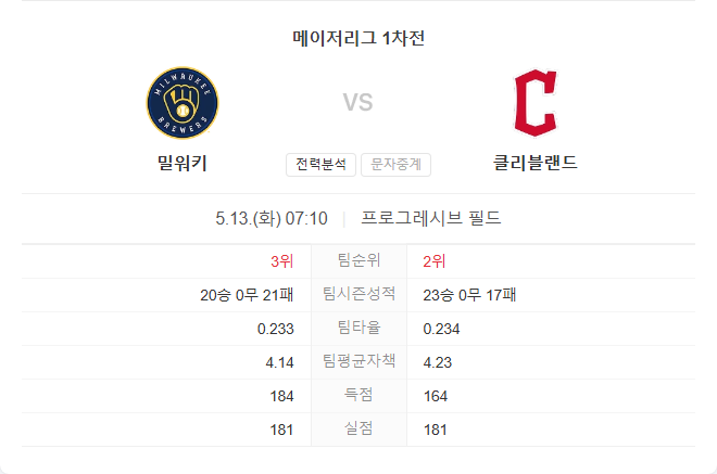 이번 경기는 양 팀 모두 투타의 기복이 뚜렷하지만, 선발 매치업에서는 밀워키가 우위에 있습니다. 프레디 페랄타는 리그 최정상급 퍼포먼스를 보이고 있으며, 반대로 클리블랜드는 벤 라이블리가 준수하긴 하나 장기적인 이닝 소화력에서 다소 부족한 모습을 보입니다. 타선 역시 팽팽하지만, 현재 흐름에서는 클리블랜드가 최근 승률 면에서 우세하며 홈 이점을 가지고 있어 한층 유리해 보입니다. 그러나 페랄타의 압도적인 구위가 경기 흐름을 좌우할 가능성이 높아, 브루어스의 짜임새 있는 투수 운영이 승부를 가를 전망입니다.