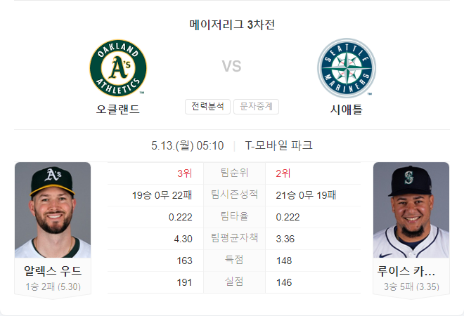 카스티요의 최근 폼과 안정적인 투구는 시애틀에게 유리할 수 있으며, 오클랜드의 약한 타선을 상대로 좋은 성적을 거둘 가능성이 높습니다. 이 경기에서 시애틀이 우위를 점할 것으로 예상되며, 루이스 카스티요의 활약이 승패를 결정짓게 될 것입니다.