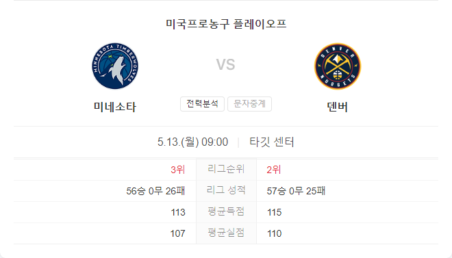 승부는 매우 박빙이 될 것으로 예상되며, 특히 미네소타의 에드워즈와 타운스가 이전 경기의 부진을 만회하려 할 것입니다. 경기는 저점수 경기가 될 가능성이 높으며, 미네소타가 덴버를 상대로 다시 한 번 강력한 수비로 승리를 거둘 것으로 예상됩니다.