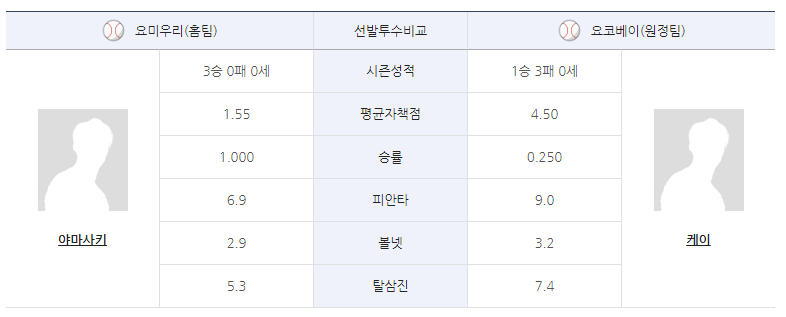 이번 시즌 두 번의 지방 구장 경기에서 12이닝 1실점으로 2연승을 기록했고, 작년 DeNA 상대로 5승 1패 ERA 1.65로 강한 모습을 보였습니다. 일요일 경기에서 오카모토 카즈마의 솔로 홈런이 유일한 득점이었던 요미우리의 타선은 오카모토를 제외한 나머지 타자들의 부진이 컸습니다.