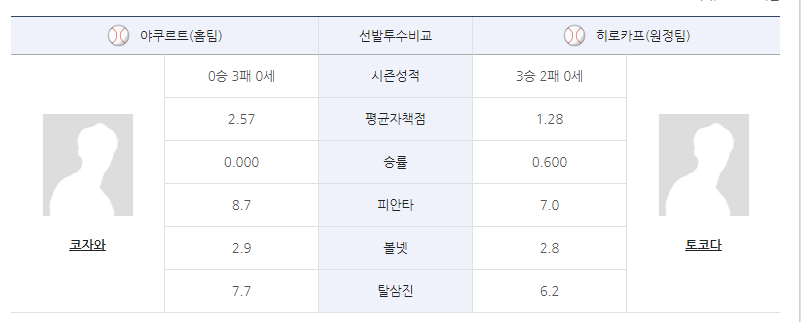 야쿠르트 스왈로즈는 투수진의 호투로 연패에서 탈출했으며, 코자와 레이지(3패, ERA 2.57)가 시즌 첫 승에 재도전합니다. 코자와는 5일 주니치와의 홈 경기에서 6이닝 2실점의 투구로 패배했으나, 투구 내용에 비해 운이 따르지 않았습니다. 4월 2일 히로시마 원정에서 6이닝 무실점 투구를 했던 것을 고려하면 이번 경기에서도 좋은 성적을 기대할 수 있습니다.