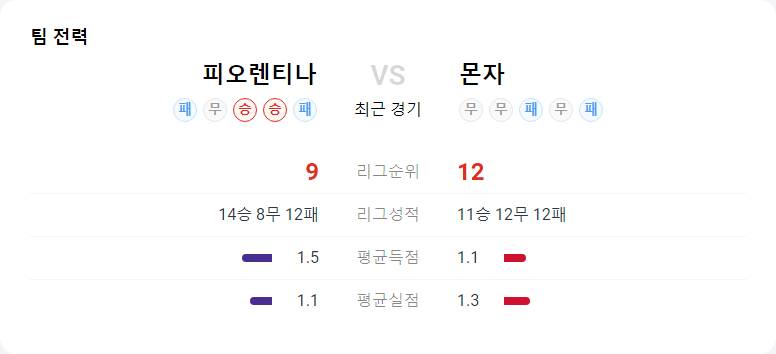 이번 경기에서 피오렌티나의 체력적 문제는 원정팀 몬차에게 유리하게 작용할 수 있습니다. 피오렌티나의 피로 누적과 밀집된 일정이 몬차의 전술적 우위로 이어질 가능성이 높으며, 이는 경기 결과에 큰 영향을 미칠 것입니다.