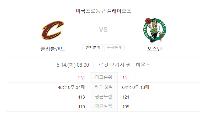 | 5월 12일 NBA 보스턴 셀틱스 VS 클리블랜드 캐벌리어스 타카짱의 경기 예측 분석 (0) | 2024.05.11 |