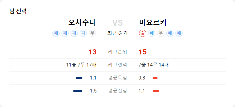 오사수나는 최근 경기에서 연패를 겪으며 부진한 모습을 보이고 있습니다. 빌바오 전에서 역습이 통하는 모습을 보였지만, 마요르카는 역습보다는 안정적인 플레이를 선호하는 팀이라 같은 전략이 통할지는 의문입니다.