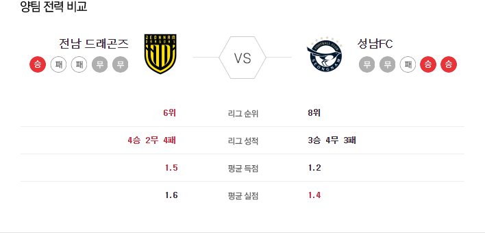 5월 15일 K리그2 전남 VS 성남 타카짱의 경기 예측 분석