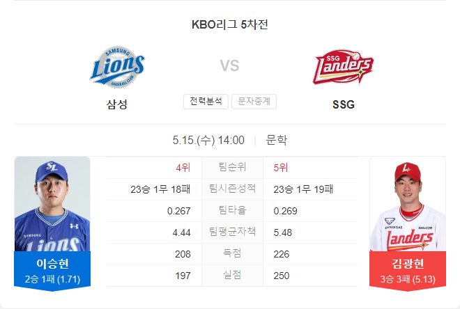 | 5월 14일 KBO 프로야구 삼성 라이온즈 VS SSG 랜더스 타카짱의 경기 예측 분석 (0) | 2024.05.14 |