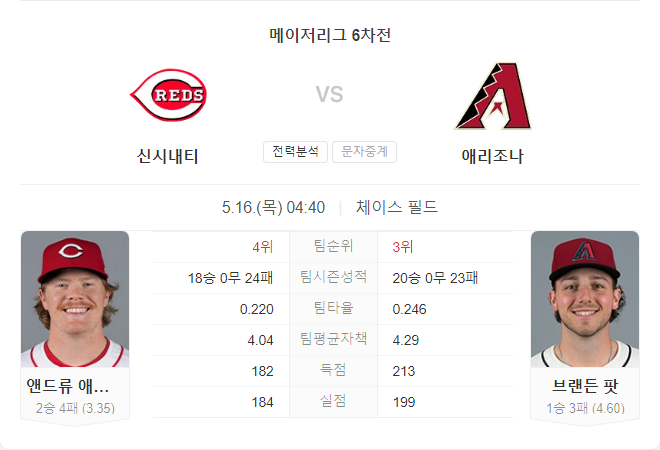 애리조나의 홈 경기 성적이 10승 10패로 특별히 강하지 않다는 점을 감안할 때, 신시내티 레즈가 이번 경기에서 승리를 거둘 가능성이 높습니다. 두 팀 모두 최근 타격에서 좋은 모습을 보이고 있기 때문에, 높은 득점 경기가 예상됩니다.