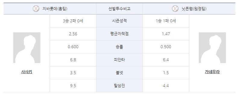 최근 니혼햄은 시리즈 첫 경기에서 투구가 매우 좋다. 그리고 벌써 3번째 사사키를 상대하면서 어느 정도 공략법을 파악한 상태다. 물론 카네무라의 투구가 변수가 될 수 있지만, 야외 구장에서의 카네무라는 좋은 투구를 기대할 수 있다.