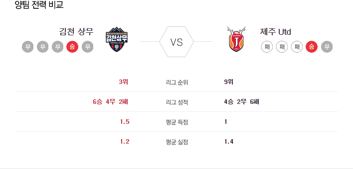 김천은 현재 대한민국 2부 리그에서 3위에 위치해 있으며, 최근 5경기에서 1승 4무를 기록하고 있습니다. 김천은 역습 기반의 전술을 주로 사용하는 팀으로, 제주가 적극적인 압박 전술을 가져오면 오히려 유리할 수 있습니다. 후반전에 제주가 지친 모습을 보일 가능성도 있습니다.