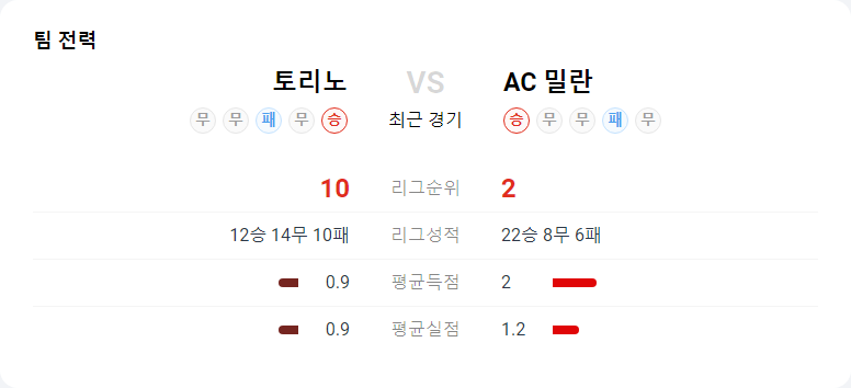 밀란은 최근 경기에서 득점력과 상대 압박을 분쇄하는 능력을 보여주며 고평가를 받고 있다. 그러나 토리노를 상대로 원정 경기에서 어려움을 겪는 경향이 있다. 홈에서 14골을 내주는 반면, 원정에서는 29실점을 기록하여 수비력이 약해지는 모습을 보인다. 이는 원정 경기에서의 실점 커버 능력이 문제로 작용할 수 있음을 시사한다.