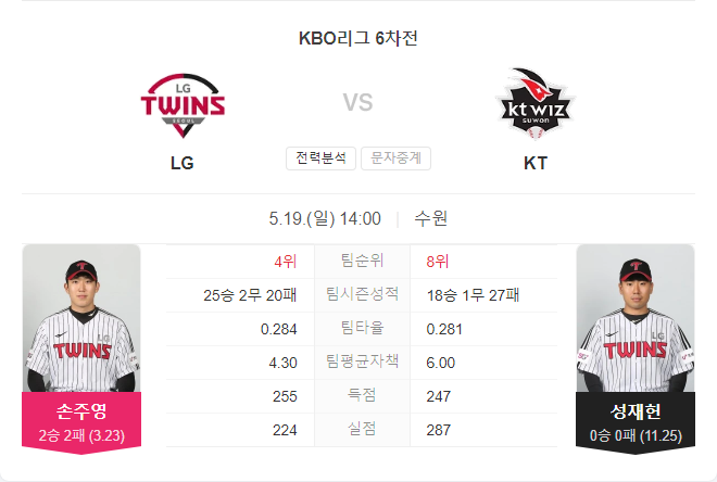 전날 경기에서는 신본기의 솔로 홈런을 포함해 6점을 올리며 막판 2이닝 동안 4점을 몰아치는 득점력이 돋보였지만 9회말 무사 만루 상황을 살리지 못한 것은 KT의 치명적인 약점으로 작용했습니다. 주권의 조기 강판 이후 6.1이닝을 2실점으로 막은 불펜도 좋은 모습을 보였지만, 이번 경기에서도 부담이 될 수 있습니다.
