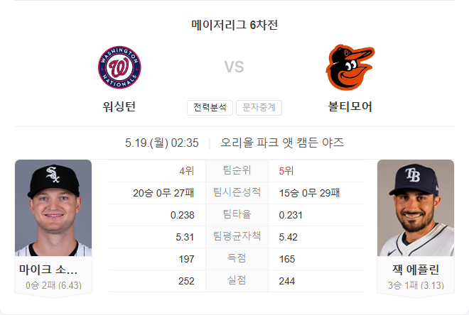 하지만 내셔널스는 최근 연승 분위기와 상위 타선의 집중력, 그리고 볼티모어 감독 교체에 따른 혼란 속에서 경기를 유리하게 끌어갈 가능성이 있습니다. 타선이 평균 수준만 해준다면 워싱턴이 근소한 우세를 점할 수 있을 것입니다.