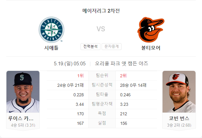 이번 경기에서는 볼티모어 오리올스가 유리할 것으로 보인다. 시애틀 매리너스는 투수진이 안정적이지만, 타선에서의 득점력이 부족하다. 반면, 오리올스는 강력한 타선과 안정적인 투수진을 보유하고 있으며, 홈 경기에서 더 나은 성적을 보이고 있다. 카스티요가 좋은 투구를 보일 수 있지만, 오리올스의 타선이 그의 공을 공략할 가능성이 높다.