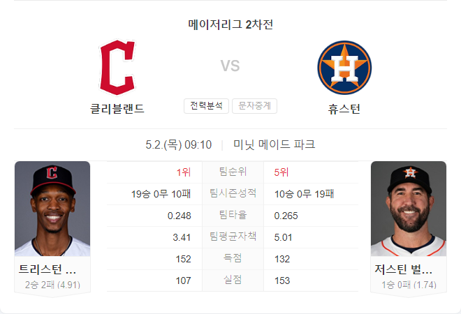 휴스턴이 홈에서 강한 모습을 보여줄 수 있는 반면, 클리블랜드는 리그에서 가장 강한 팀 중 하나로서 경기를 풀어갈 전략이 필요할 것입니다. 경기는 접전이 될 가능성이 높으며, 휴스턴이 벌랜더의 안정된 투구를 바탕으로 경기를 주도할 가능성이 있습니다. 결과적으로는 휴스턴이 이번 경기에서 승리할 가능성이 조금 더 높아 보입니다.