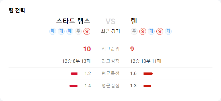 최근 브레스트와 마르세유를 상대로 1승 1무를 기록하며, 흔들리던 팀을 잘 수습했습니다. 그러나 득점력에서는 큰 개선이 이루어지지 않았습니다. 랭스는 기본적으로 수비력이 좋지만, 렌을 상대로는 화력을 잘 감당하지 못하는 경우가 종종 있었습니다.