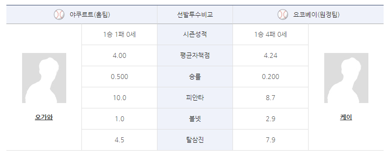 야쿠르트 스왈로즈는 연패를 끊기 위해 오가와 야스히로(1승 1패, ERA 4.00)를 선발로 내세웁니다. 오가와는 최근 요미우리와의 경기에서 5이닝 4실점으로 패배했지만, 작년 DeNA와의 경기에서 4승 1패를 기록하며 강한 모습을 보였습니다. 특히, 홈 경기에서 좋은 성적을 내왔다는 점이 이번 경기에서도 긍정적인 요소로 작용할 것입니다.