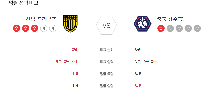 최근 두 팀의 맞대결에서는 전남 드래곤즈가 충북 청주 FC를 상대로 우세한 경기를 펼쳐왔습니다. 전남의 전술적 우위와 높은 기술력이 충북 청주의 수비를 여러 차례 무너뜨렸으며, 유리한 결과를 얻어냈습니다. 이번 경기에서도 전남 드래곤즈는 홈 이점을 최대한 활용하여 경기를 주도할 것으로 보입니다.
