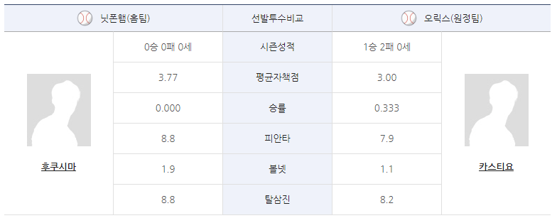 5일 니혼햄과 홈 경기에서 6.1이닝 2실점 투구를 보여주었는데, 금년 니혼햄과의 투구 내용과 원정임을 고려한다면 6이닝 2~3실점 정도가 결과물이 될 가능성이 높다. 전날 경기에서 야마사키 사치야 상대로 4점을 올린 오릭스의 타선은 원정 첫 경기에서 좋은 집중력을 보여줬다는 점에 만족해야 할 것 같다.