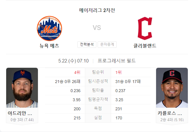 이번 경기는 양 팀의 선발 투수 모두 다소 부진한 시즌을 보내고 있어, 타선의 활약이 중요한 변수가 될 것입니다. 클리블랜드 가디언스는 최근 4연승을 기록하며 좋은 흐름을 이어가고 있고, 홈 경기에서의 강점을 살려 메츠를 상대로 우위를 점할 것으로 보입니다.