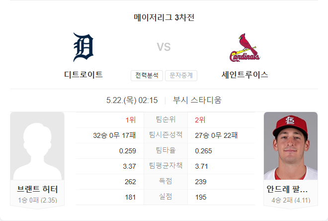 허터가 선발로 나서는 디트로이트는 마운드에서의 확실한 안정감과 함께 최근 타선이 불을 뿜고 있어 유리한 고지를 점하고 있습니다. 반면 카디널스는 팔란테의 기복 있는 피칭이 부담이며, 타선의 분전이 필요하지만 투수력 격차를 넘기에는 역부족일 수 있습니다. 흐름상 디트로이트가 시리즈를 승리로 마무리할 가능성이 높아 보입니다.