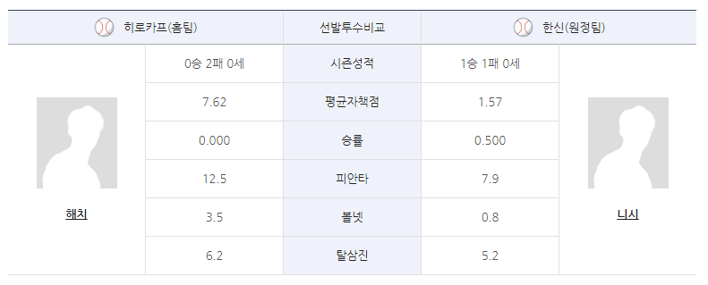 금년 닛폰햄 상대 투구도 좋지 않았다는 점이 이번 경기에 불안 요소로 작용할 수 있습니다. 전날 경기에서 후쿠시마를 상대로 찬스를 살리지 못하고 패배한 히로시마 타선은 타격에서 많은 문제를 드러내고 있습니다.