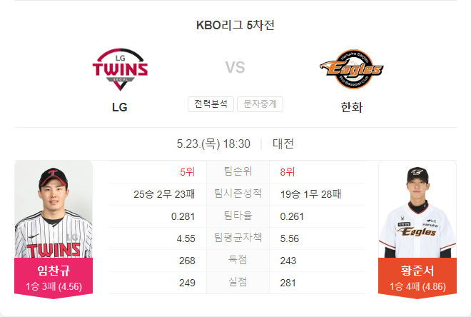 임찬규는 3월 24일 한화와의 홈 경기에서 6이닝 3실점 패배를 당했지만, 최근의 좋은 투구 폼을 고려할 때 이번 경기에서도 좋은 투구를 기대할 수 있습니다.