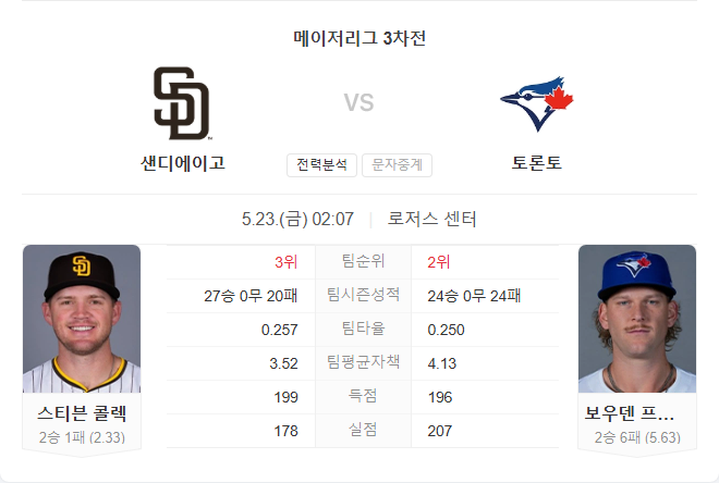 두 팀 모두 선발 투수의 최근 성적이 불안한 가운데, 파드리스는 타선과 마운드 전반에서 좀 더 안정적인 전력을 보이고 있습니다. 블루제이스는 홈 이점을 갖고 있지만 프랜시스의 기복 있는 투구와 팀 전반적인 득점력 저조가 약점으로 작용할 가능성이 큽니다. 반면 파드리스는 최근 부진 속에서도 타율과 출루율에서 우위를 보이며, 장타 한 방으로 분위기를 전환할 여지가 충분합니다. 전체적인 흐름과 전력 차이를 감안할 때 파드리스의 원정 승리가 기대됩니다.
