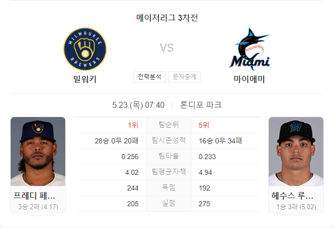 이번 경기는 양 팀 모두 좋은 선발 투수를 내세우고 있어 치열한 경기가 예상됩니다. 밀워키 브루어스는 최근 타격에서 좋은 모습을 보이고 있으며, 프레디 페랄타가 안정적인 투구를 보여줄 것으로 기대됩니다.
