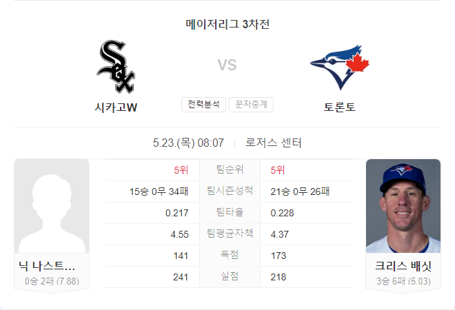화이트삭스와 블루제이스는 선발 투수에서 큰 차이가 없습니다. 하지만 토론토가 유리할 것으로 보입니다. 클레빈저는 이번 시즌 아직 5이닝을 넘기지 못했으며, 화이트삭스의 불펜은 WHIP 1.41로 AL에서 최하위를 기록하고 있습니다.