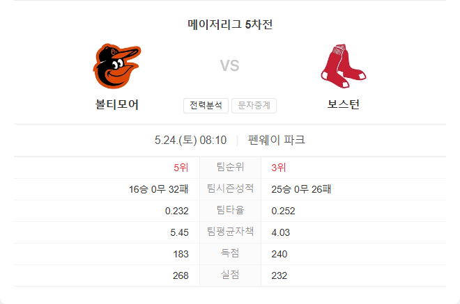 이번 경기는 양 팀 선발진의 불확실성이 변수입니다. 오리올스는 선발 미정으로 불펜 총력전이 예상되며, 레드삭스는 지올리토가 선발로 나서지만 최근 피칭 내용이 매우 불안정합니다. 그러나 보스턴은 최근 타선의 흐름이 좋고 홈에서 강세를 보이고 있는 반면, 볼티모어는 마운드 난조와 타선의 기복으로 인해 안정적인 경기 운영이 어렵습니다.