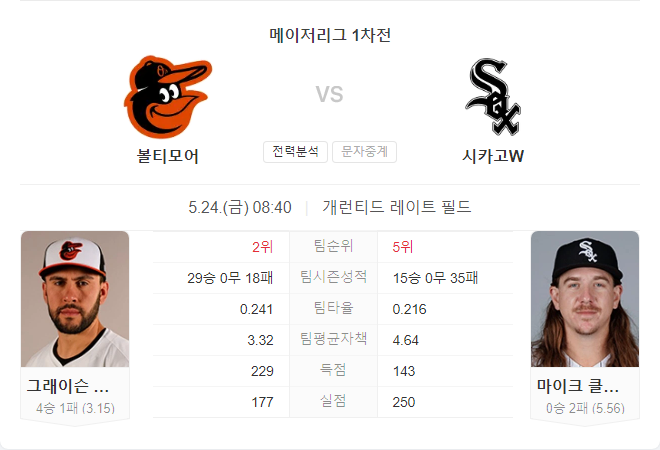 볼티모어 오리올스는 원정 경기에서도 좋은 성적을 보이고 있으며, 그레이슨 로드리게즈의 안정적인 투구와 강력한 타선이 이번 경기에 큰 도움이 될 것으로 예상됩니다. 반면, 시카고 화이트삭스는 부상자가 많고 최근 10경기에서 3승 7패로 부진한 성적을 보이고 있어 이번 경기에서 어려움을 겪을 것으로 보입니다.
