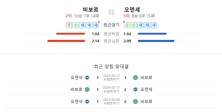 비보르와 오덴세의 맞대결에서는 홈팀 비보르가 약간의 우세를 보일 것으로 예상됩니다. 비보르는 최근 홈 경기에서 안정적인 성적을 유지하고 있으며, 오덴세는 원정 경기에서 부진한 모습을 보이고 있습니다.