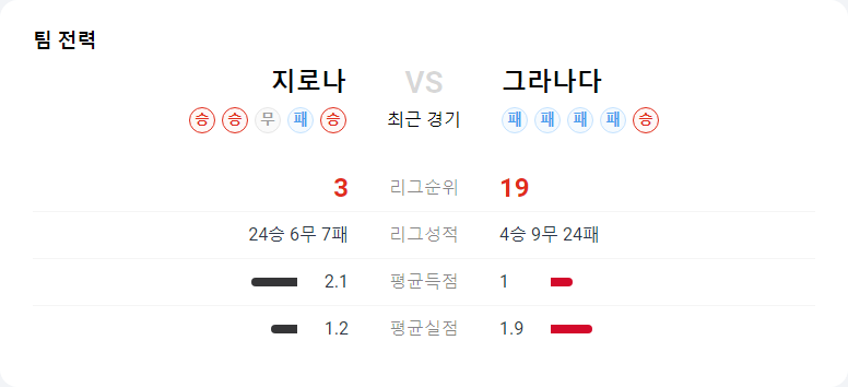 그라나다는 이번 시즌 원정 경기에서 단 한 번도 승리하지 못한 팀으로, 지로나의 강력한 공격진을 상대로 어려운 경기를 펼칠 것으로 예상됩니다. 지로나는 챔피언스리그 진출을 확정지으며 좋은 분위기를 이어가고 있으며, 이번 경기에서도 강력한 모습을 보일 것입니다.