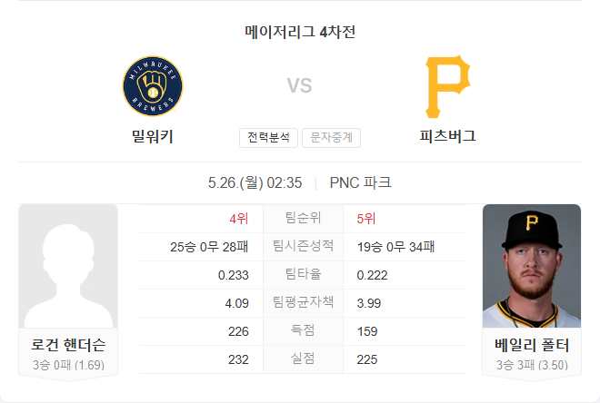 원정에서도 한 차례 등판해 5이닝 2실점으로 승리를 챙긴 바 있으며, 이번 경기도 브루어스에게는 중요한 반등 기회가 될 전망입니다.