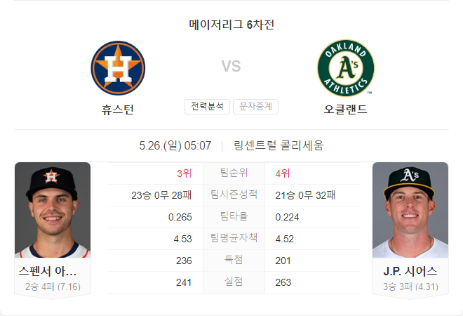 휴스턴 애스트로스는 이번 시즌 23승 28패로 다소 부진한 출발을 보였지만, 최근 10경기에서 7승을 기록하며 상승세를 타고 있습니다. 이번 경기에서는 스펜서 아리게티가 선발 등판합니다.