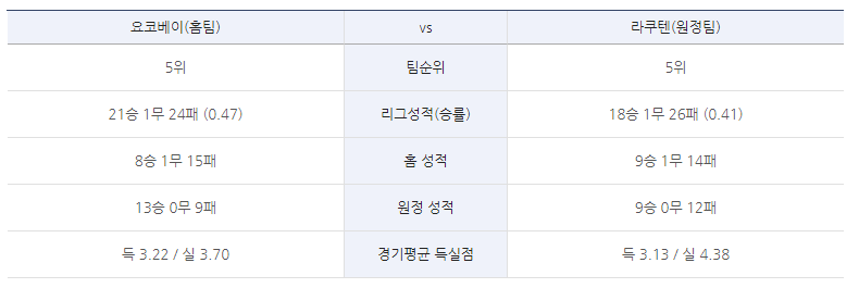 앤서니 케이의 투구는 최근 들어 안정감을 찾기 시작했습니다. 라쿠텐은 좌완 투수에게 약한 모습을 보여왔기 때문에 케이를 공략하기 어려울 것입니다. 반면, 폰세는 홈 구장 외에서는 기대할 수 없는 투수이며, 이번 경기도 예외는 아닐 것입니다. 홈의 이점을 가진 요코하마 DeNA 베이스타즈가 승리에 가까이 있을 것입니다.