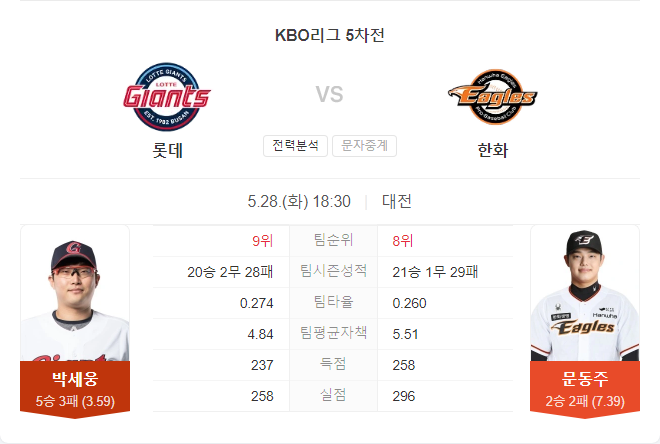 | 5월 26일 KBO 프로야구 한화 이글스 VS SSG 랜더스 타카짱의 경기 예측 분석 (0) | 2024.05.26 |