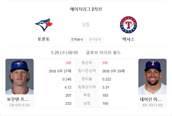 | 5월 28일 MLB 메이저리그 시카고 화이트삭스 VS 뉴욕 메츠 타카짱의 경기 예측 분석 (0) | 2025.05.27 |