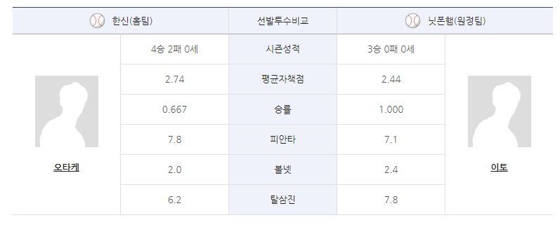 작년 교류전에서 좋은 투구 내용을 보였기 때문에 이번 경기에서도 7이닝 2~3실점 정도를 기대해볼 만합니다. 전날 경기에서 타격 부진을 보였던 닛폰햄의 타선은 특히 결정적인 찬스를 살리지 못한 것이 아쉽습니다. 불펜전으로 간다면 닛폰햄이 유리할 가능성이 높습니다.